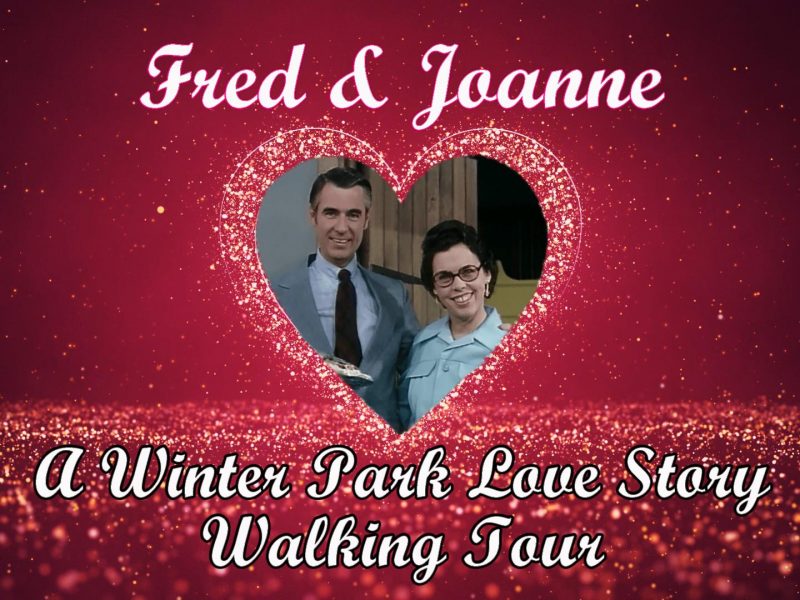 Join us as we walk through the same streets as Fred and Joanne, see their sites and Florida home, and hear the heart-touching stories of a love affair for the ages which began and continued in beautiful Winter Park